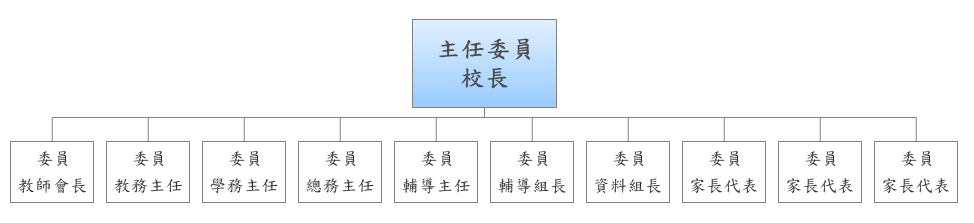 家庭教育委員會置委員九人至二十三人,均為無給職,任期一年,期滿得續聘之,由校長、教師代表、家長及社會專業人士組成。主任委員由校長兼任之,其中任一單一性別不得低於委員總數三分之一,家長代表應占委員總數三分之一以上,原住民或身心障礙或低收入戶或新移民學生家長代表至少一人。