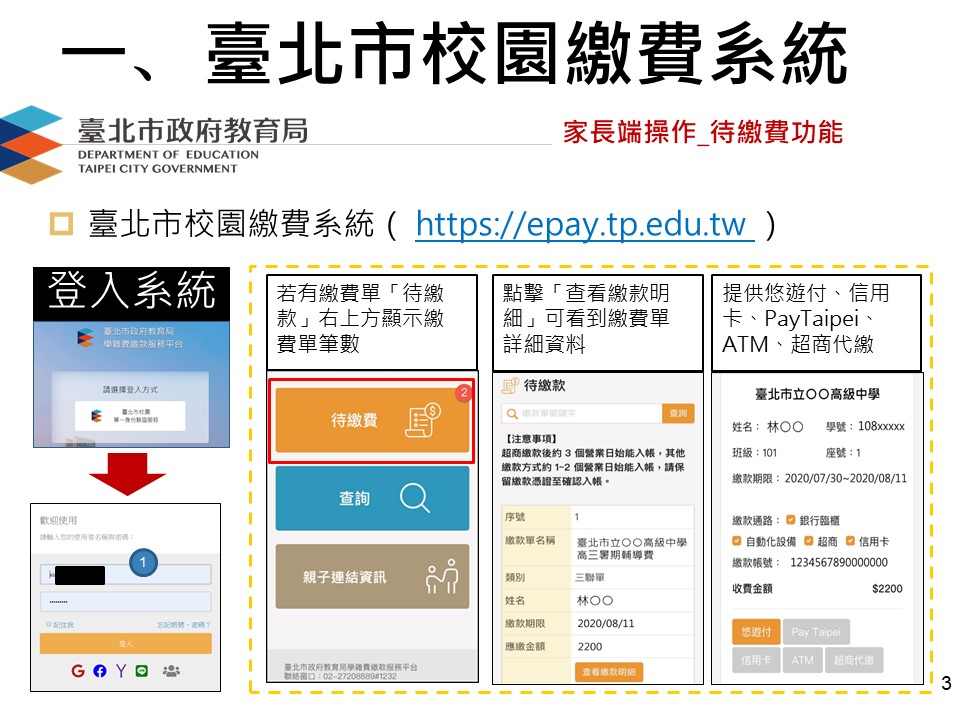 臺北市校園繳費系統操作流程