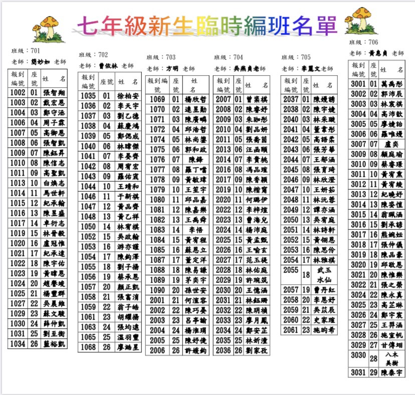 ◎新生臨時編班7/14(二)公布在校網及川堂。