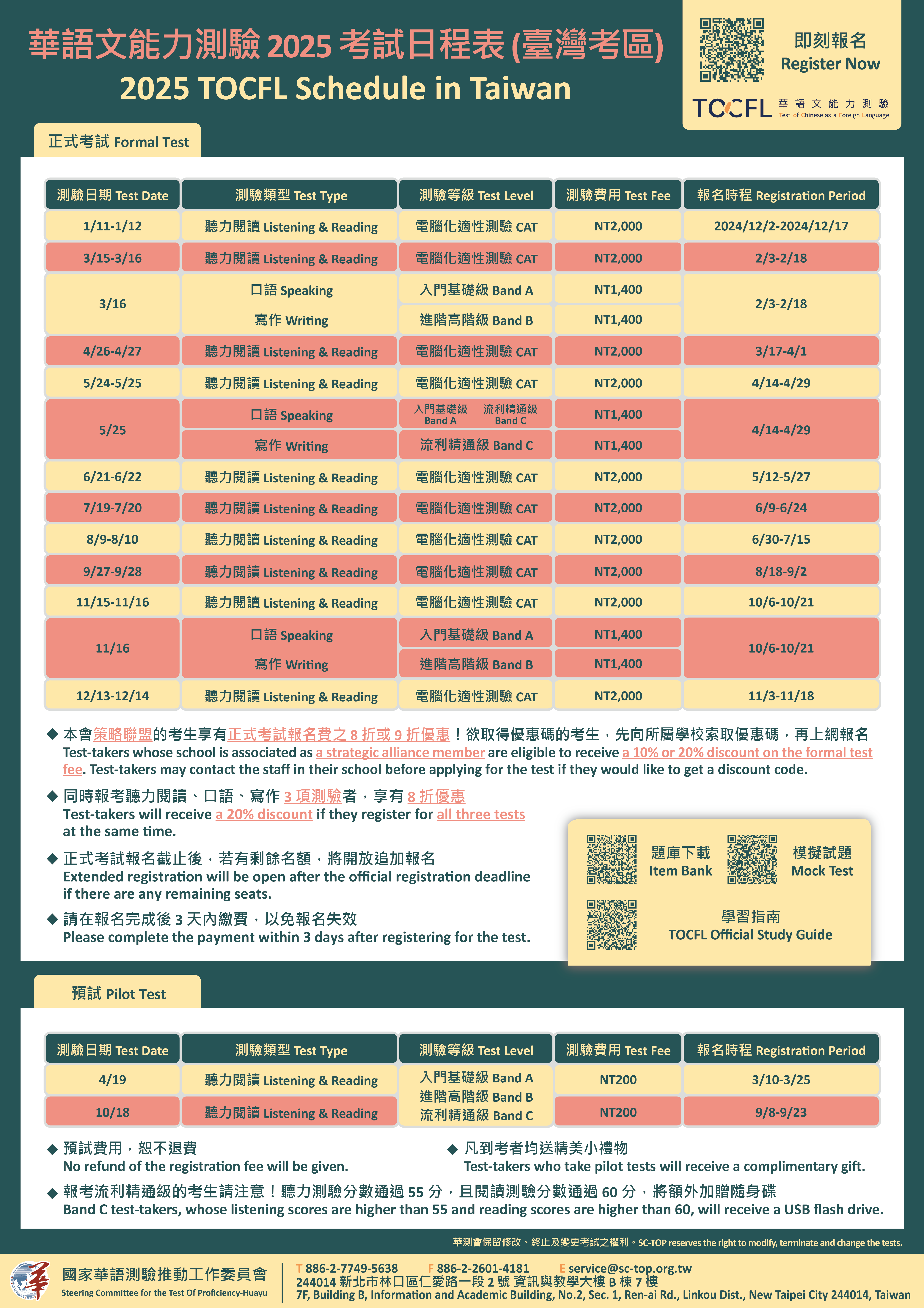 (二)團體報名:團體報名可於開放報名前一週向該會申請團報名額,考生人數須達30位。由單一窗口彙整上傳報名資料與考生照片,並於報名截止日前完成測驗費用匯款。